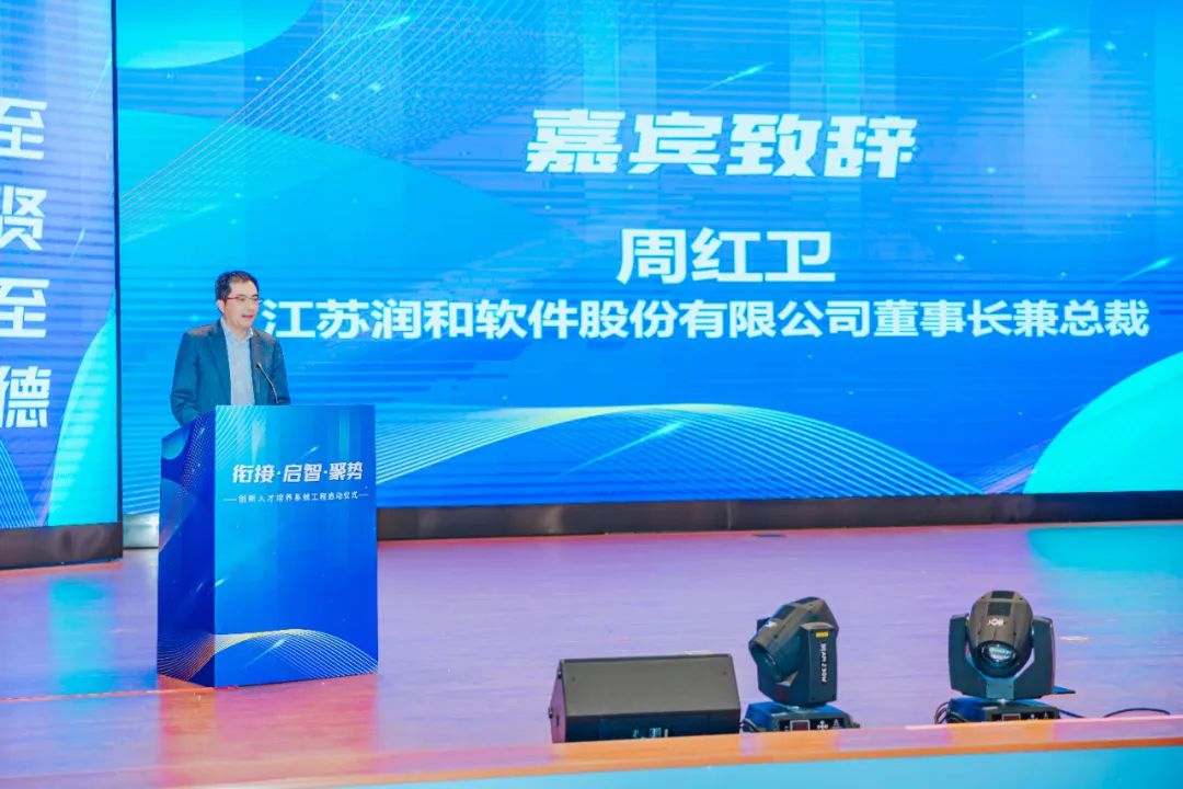 润和软件董事长兼总裁周红卫在“创新人才培养系统工程”启用仪式上致辞
