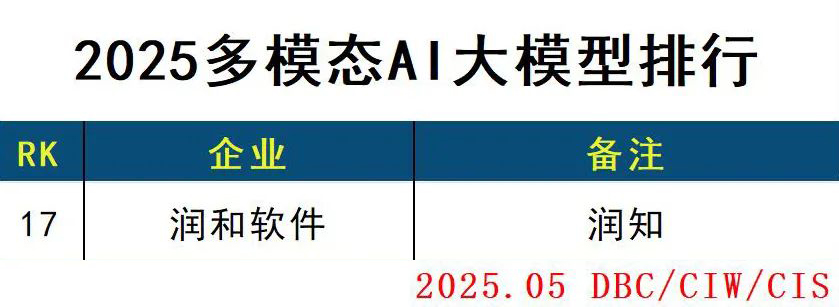 润和软件“润知”知识处理大模型荣登“2025多模态AI大模型排行”榜单