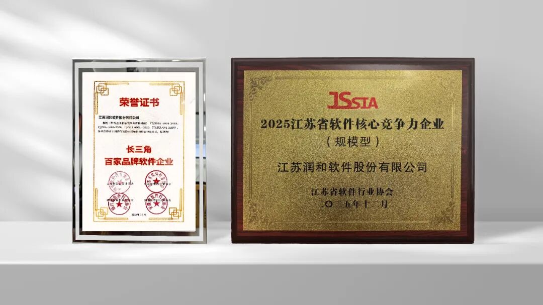 润和软件荣获"2025长三角百家品牌软件企业(江苏)""2025年度江苏省软件企业核心竞争力企业"