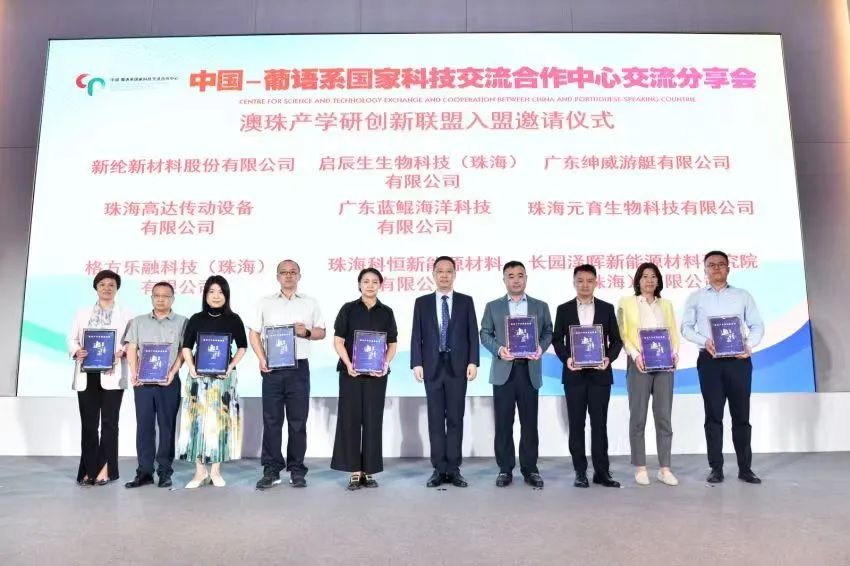 ▲珠海科恒新能源材料有限公司(左三)受邀加入澳珠产学研创新联盟