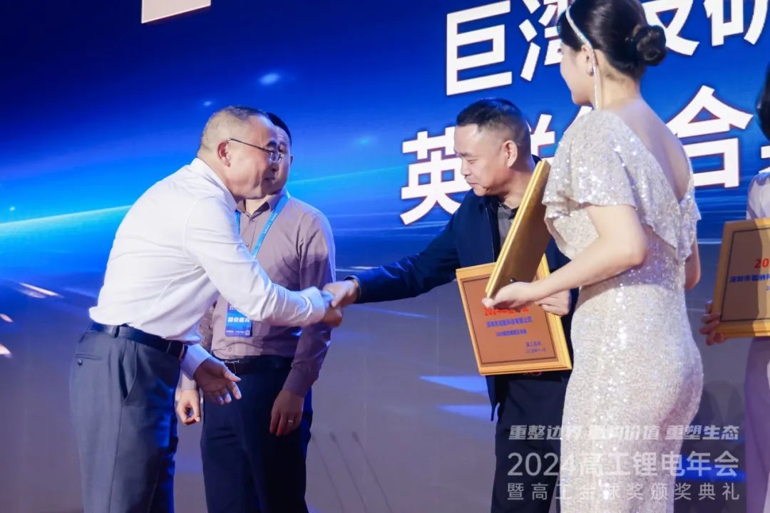 在璀璨的灯光和热烈的掌声中,科恒股份全资子公司浩能科技副总经理苏建贵先生登台领奖。他表示:“这个奖项是对浩能科技创新实力的充分肯定,也是对我们一直以来钻研前沿技术的鼓励。浩能科技的研发理念与本届盛会的主题“打开边界,向新求质”高度契合,这也是浩能科技研发出众多新产品的坚实基础。未来,我们将一如既往地以人才为本,以科技创新燃动新质生产力,不断打破技术藩篱,为锂电行业提供更加优质的智能装备解决方案。”