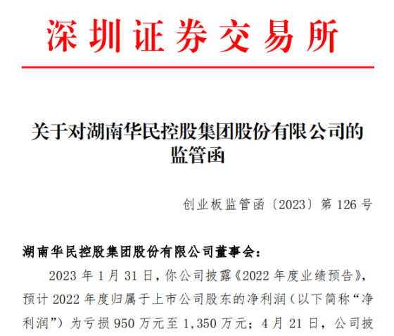 日前,因《2022年业绩预告》披露的预计净利润与经审计的数额差异较大,华民股份收到深交所下发的监管函。