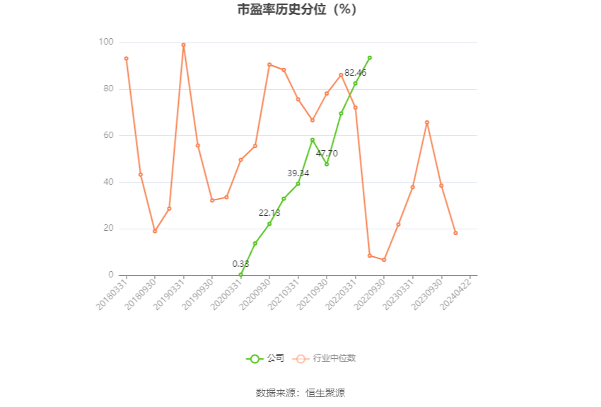 市盈率为负时,不显示当期分位数,会导致折线图中断。