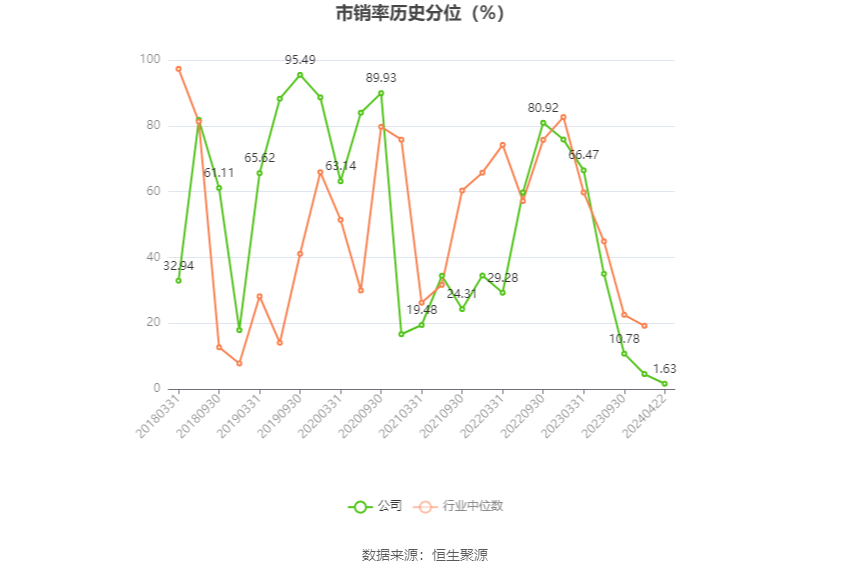 以4月22日收盘价计算,华民股份目前市盈率(TTM)约为-20.26倍,市净率(LF)约为4.59倍,市销率(TTM)约为3.42倍。