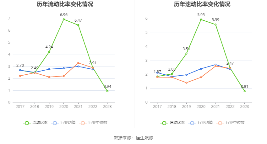 2023年,公司流动比率为0.94,速动比率为0.81。