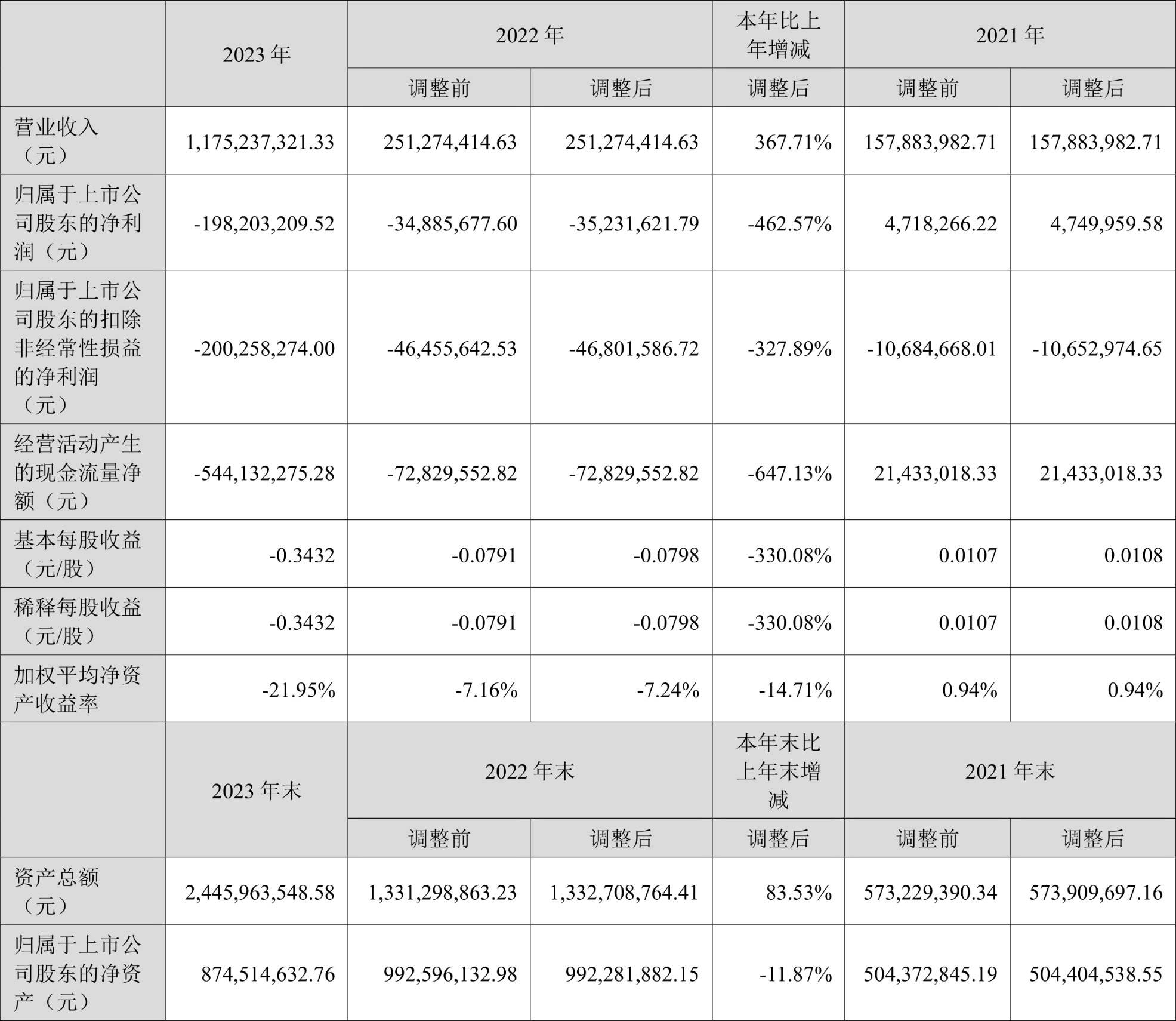 数据显示,2023年公司加权平均净资产收益率为-21.95%,较上年同期下降14.71个百分点;公司2023年投入资本回报率为-23.50%,较上年同期下降17.75个百分点。