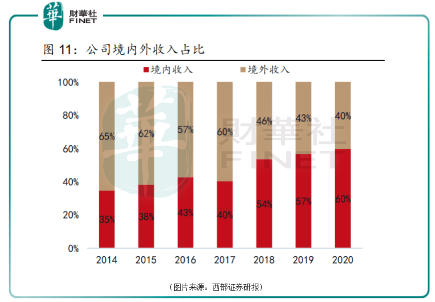 境外业务占比远低于境内业务