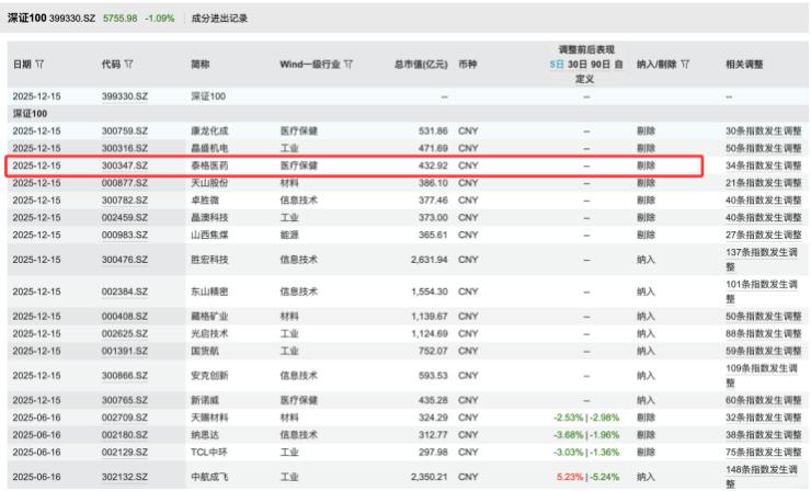 国内临床CRO龙头企业 泰格医药 (300347.SZ)于12月15日起正式被调出深证100成份股,结束了自2019年12月纳入以来长达六年的指数生涯。此次调整正值CRO行业因“猴荒”再现迎来普涨行情,板块内多数企业股价上行。
