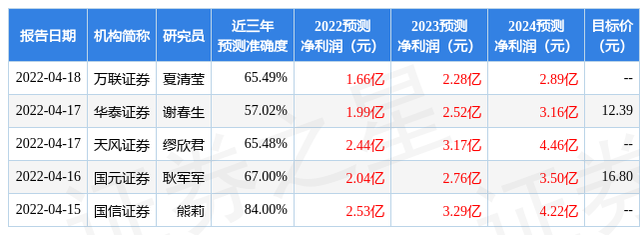 以下是详细的盈利预测信息: