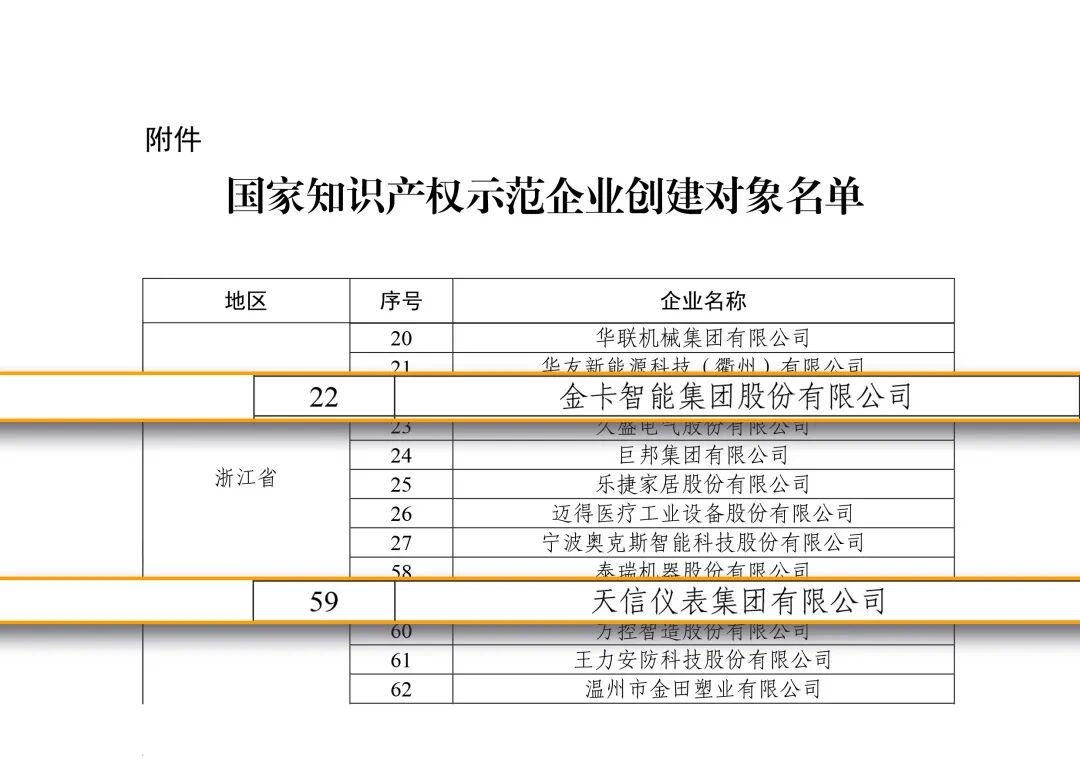 近日,国家知识产权局公布2025-2027年《国家知识产权强国建设示范创建对象名单》,金卡智能集团股份有限公司、天信仪表集团有限公司凭借卓越的知识产权管理能力和技术创新成效,成功入选国家知识产权示范企业创建。该荣誉是国家给予企业知识产权管理工作的最高评价与肯定。