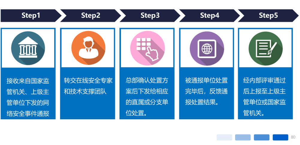 该平台可以接收来自国家监管机关、上级主管单位下发的网络安全事件通报,可进行通报内容预处理,并转交在线安全专家和技术支撑团队进行处置方案研判。之后下发给相应的直属或分支单位进行处置,反馈通报处置结果。经内部评审通过后上报至上级主管单位或国家监管机关。