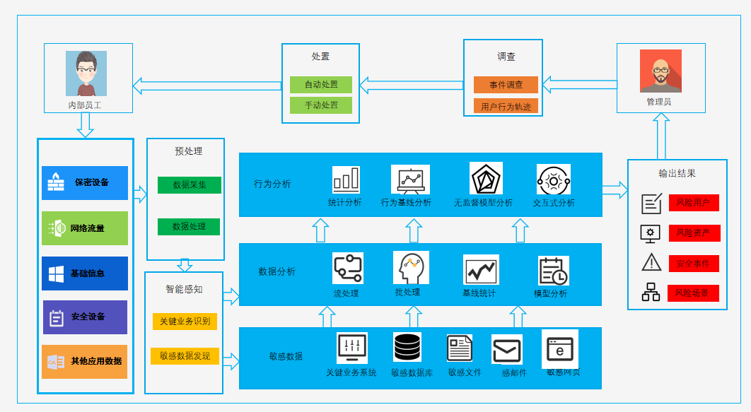 在工作中,《保守国家秘密法》《反间谍法》《网络安全法》等法律法规对保密工作、信息安全作出了明确规定。其中保密的最大天敌就是“内鬼”,因“内鬼”泄密带来的企业数据泄露事件要远远多于其他方式。从安全防护的技术实现路径上看,将数据脱敏保护与零信任、多因素身份认证、最小权限访问控制等安全机制相融合,正在成为一条得以验证的有效路径。北信源的解决之道是通过“发现内部人员异常泄密行为”的UEBA和“自动识别敏感数据并监测”的安全态势分析系统来实现防泄密。