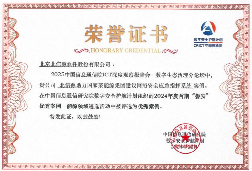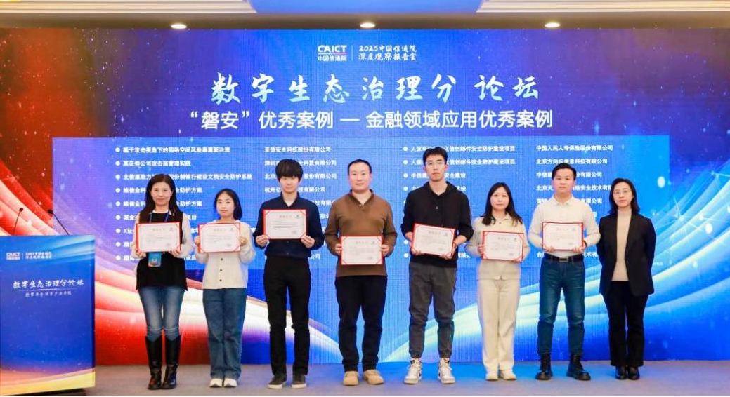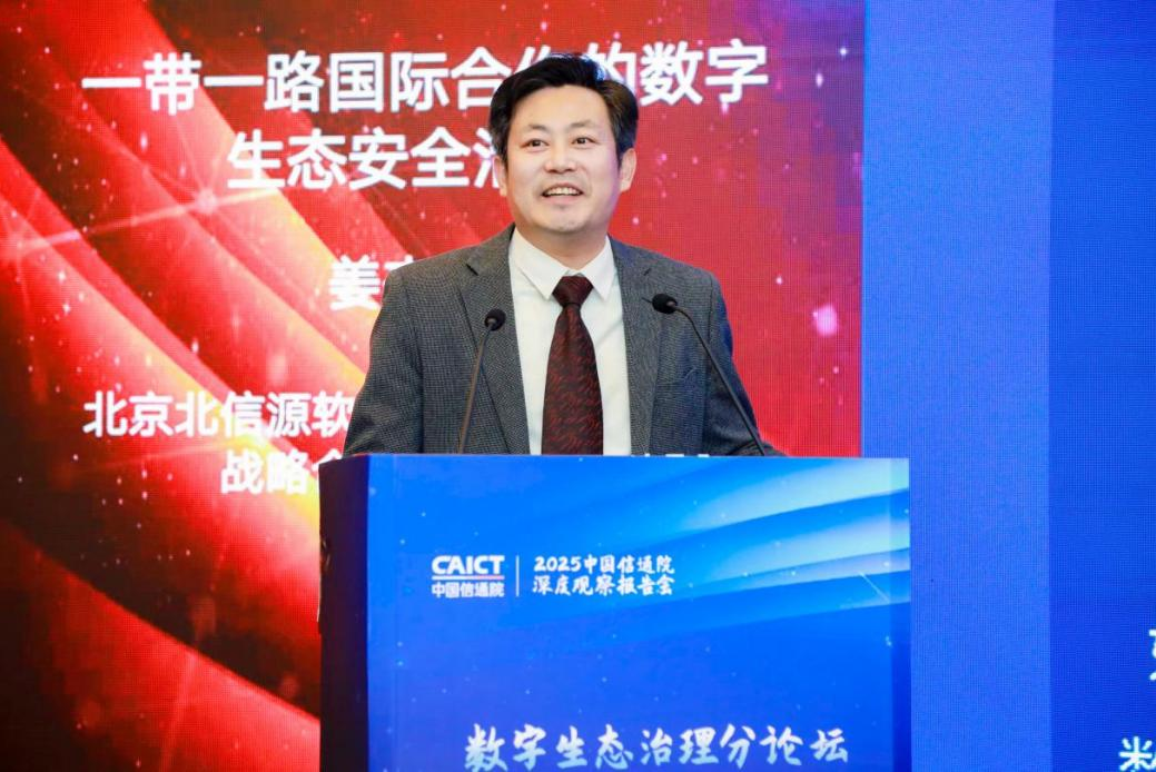 近日,2025中国信通院ICT深度观察报告会——数字生态治理分论坛在京举行。北信源受邀出席,并由战略合作总经理姜来发表《“一带一路”国际合作的数字生态安全治理》主题演讲。论坛上,“磐安”优秀案例征集结果正式发布,北信源凭借领先的技术优势和创新实力,在政务、交通、金融、能源四大领域入选“数字安全应用优秀案例”。