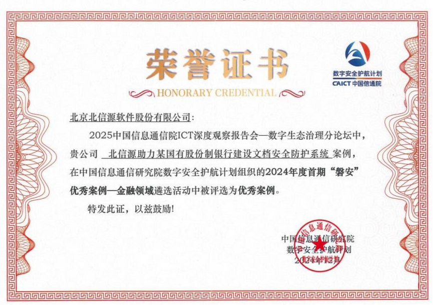 北信源充分借助其实践经验,以电子文档为核心,采用“文档加密防护+信息泄露防护+云文档”的综合方式对该银行的商密文件进行了全方位的防护,特别是针对包含商密信息的各类应用系统,如公文系统等,提供了有效的保护措施。该方案已完成60万点部署,成为业界商密保护领域的标杆。北信源将继续深耕金融科技领域,持续为金融业稳定、高效及可持续发展提供有力支撑,并与金融行业伙伴合力推动整个金融生态系统的安全升级,为金融强国、数字中国及数字经济发展贡献力量。