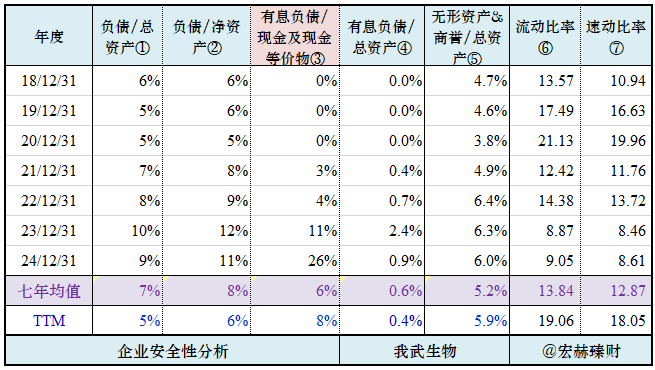 结合公司业务和商业模式,分别从七年均值和去年末值来观察该公司的资产安全性和资金流动性。