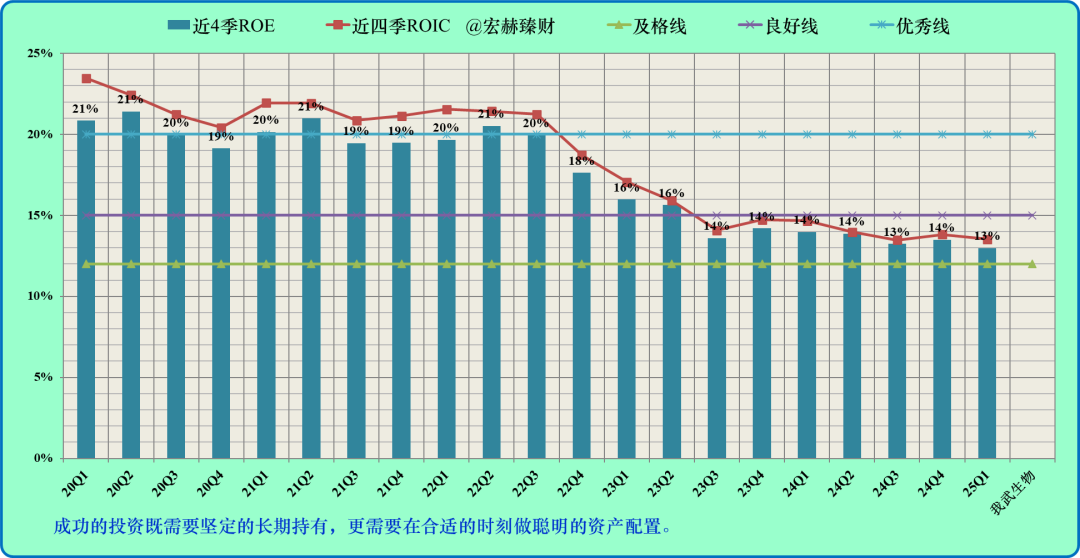 竞争优势是个复杂思维研判体系,但可以简单的从双R指标中管中窥豹,即图2中的ROE(柱图)和ROIC(红折线)能始终站在良好线&优秀线之上的公司值得你战略跟踪研究。