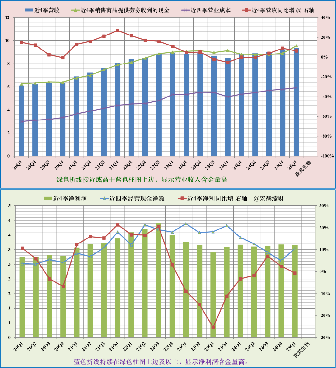 以上两图中的每一根柱图意味着以此季度为终点前推四个季度的营收和净利润,即:每个季度末前推过去12个月的营收和净利润,所以尽管是已经发生的业绩,但滚动地看对未来趋势或有所窥探。