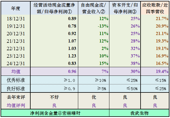 大家可以从均值以及去年度的值对照优秀和及格标准来看该公司的净利润含金量高低。战略重视有3-4个指标持续在优秀标准以上公司。