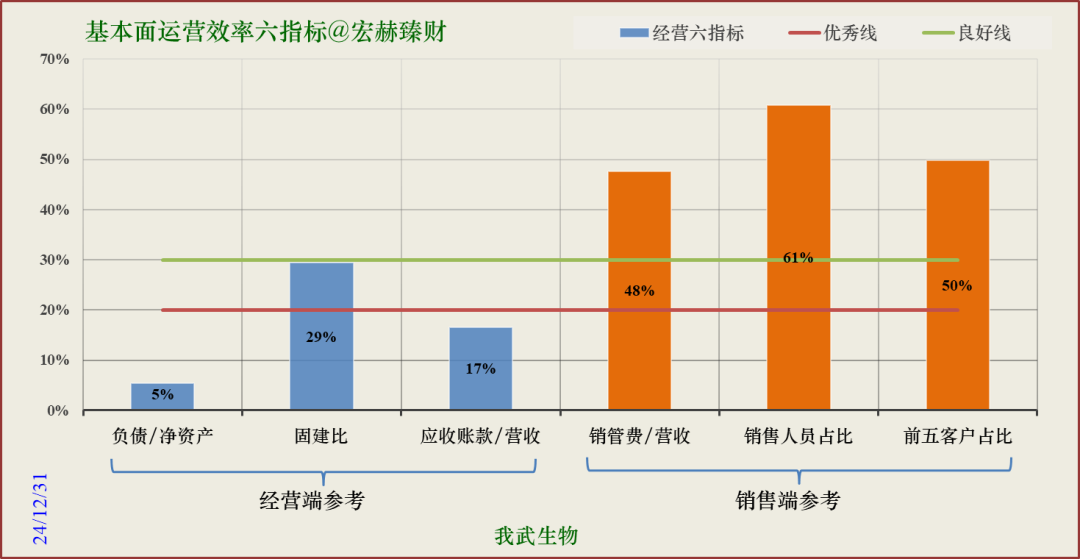 该图反映企业经营难易度,柱图越低反映企业经营越容易,低于红色线为优秀。关注六指标中有4-5项在红色优秀线以下的企业为好。