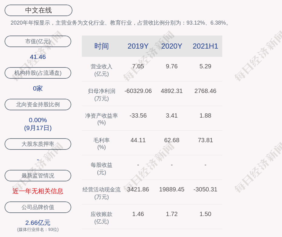 2020年年报显示,中文在线的主营业务为文化行业、教育行业,占营收比例分别为:93.12%、6.38%。