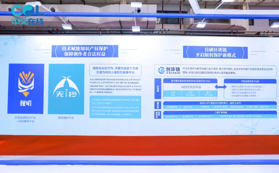 中文在线探索数字版权与创新技术的融合应用,推出知识产权一站式服务平台“权哨”和原创保护平台“无抄”,从文字维权拓展到音频、视频、外观专利等多类型维权。与此同时,中文在线联合清华大学团队,依托自主研发数权服务基础设施的联盟链——创珍链,正在探索知识产权保护新范式。