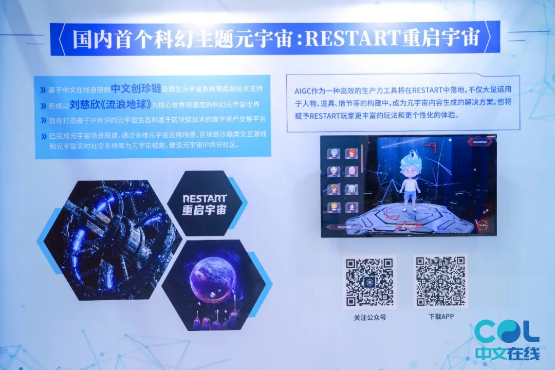 每一次技术的飞跃都带来了全新的内容生产模式变革,随着多模态的AIGC创作应用进入生产领域,内容产业迎来全新时代。大会上,中文在线展出了以自有IP打造的国内首个科幻主题元宇宙——RESTART重启宇宙。RESTART旨在形成以刘慈欣《流浪地球》为核心世界观基底的科幻元宇宙世界,该空间中的场景、人物、道具以及配乐等全部由AIGC参与创作完成。