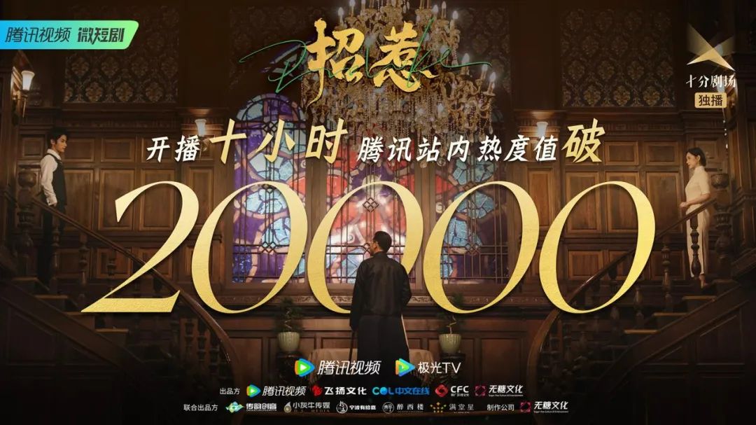 数据显示,该剧开播10小时,腾讯站内热度值即破20000,创造了腾讯短剧最高热度记录!
