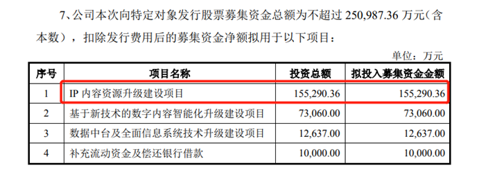 由此来看,中文在线眼下迫切需要提振业绩,以1.38亿元控股寒木春华的压力并不小。而公司似乎也意识到了资金面的紧张,选择制定策略方便收购。蓝鲸教育注意到,收购消息发布前,中文在线曾在6月披露《2023年度向特定对象发行A股股票预案》称,拟向特定对象发行股票募集资金总额不超过25.1亿元,扣除发行费用后,将使用15.53亿元投入IP内容资源升级建设项目。其中,公司计划在版权采购、IP衍生制作方面分别投入12.62亿元和2.91亿元,合计占募资总额的62%。如果募资顺利,对中文在线的现金规模将是极大的补充。