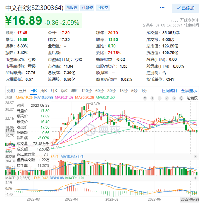 可以看到,“IP+AI”产业化受到市场关注,布局IP的动作对上市公司股价表现起到明显的催化作用。由此,中文在线宣布收购寒木春华的时间节点更显微妙。截至2023年6月28日,中文在线股价报收17.38元,与年内高点25.83元相比已经下跌33%。公告发布后一个交易日,公司股价有小幅回升,随后又再次下跌。
