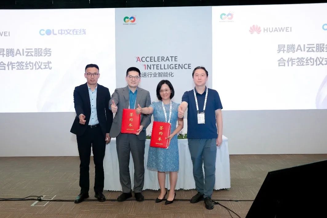 9月22日,在华为全联接大会2023上,中文在线集团股份有限公司(以下简称“中文在线”)与华为云计算技术有限公司(以下简称“华为云”)正式签署合作协议。基于华为云在公有云、AI等方面的技术积累,双方将在内容和华为云领域进行合作,共同推动面向行业的业务解决方案落地。据了解,本次合作华为云在大模型训练合作方面优先考虑中文在线的数摒权内容,而中文在线优先使用华为云承载,并将自主运营的云服务整体部署至华为云平台。中文在线集团营销中心总经理荣蓉蓉与华为云北京总经理李亚为代表双方签约,中文在线集团副总裁杨锐志,华为云EI服务产品部部长尤鹏等应邀出席并见证签约仪式。