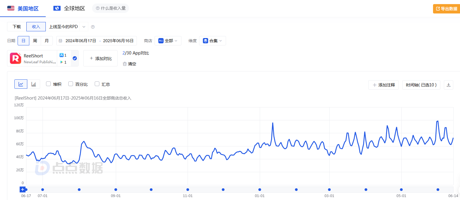 过去一年,ReelShort在美国iOS和Google Play双平台的下载量累计超过2500万次。