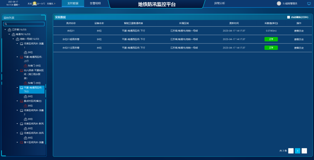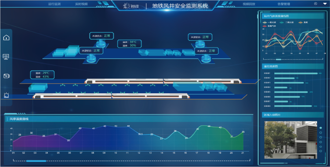 地铁防汛监测系统利用物联网、大数据及无线传输技术,通过部署在地铁隧道、风井、出入口等位置的传感器和监测设备,实时监测雨水和水浸情况,及时预警和防范可能发生的洪涝灾害,确保地铁线路和车站的安全运营。