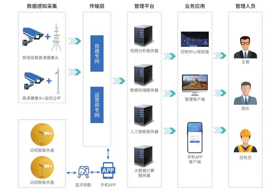 地铁风井安全监测系统采用物联网传感器和大数据分析技术,实时监测地铁风井区域的气体浓度、温度、湿度等关键指标,如发现异常情况将及时采取相应措施。系统还能够通过人工智能算法识别地铁风井区域的周界异常情况,提供预警和应急处理建议,以确保乘客和地铁的运行安全。