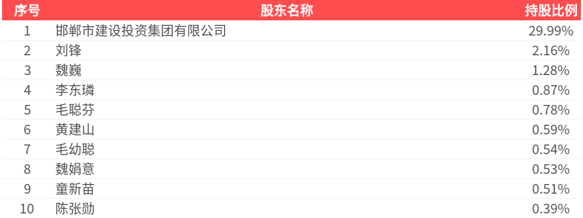 公司股东户数为3.16万户,前十大股东持股数量为1.99亿股,占总股本比例为37.64%,前十大股东持股情况如下: