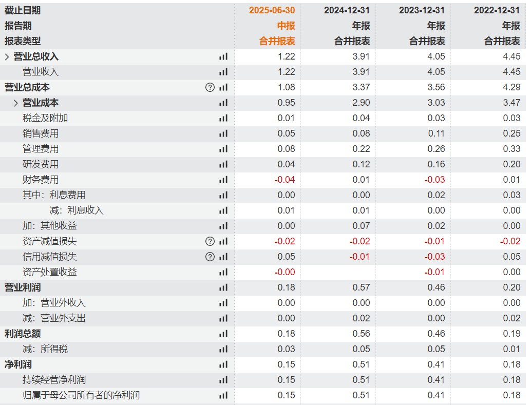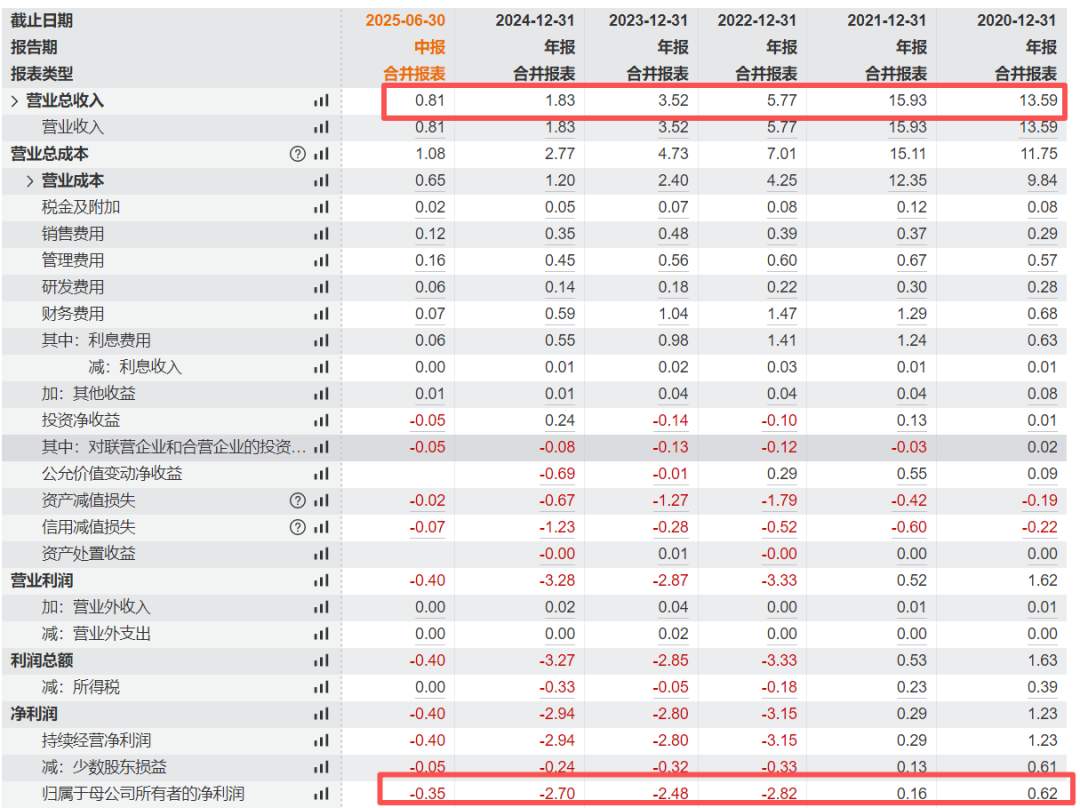 2021年以来收入持续下滑,从2021年15.93亿元跌至2024年的1.83亿元;归母净利润从0.16亿元跌至-2.70亿元。