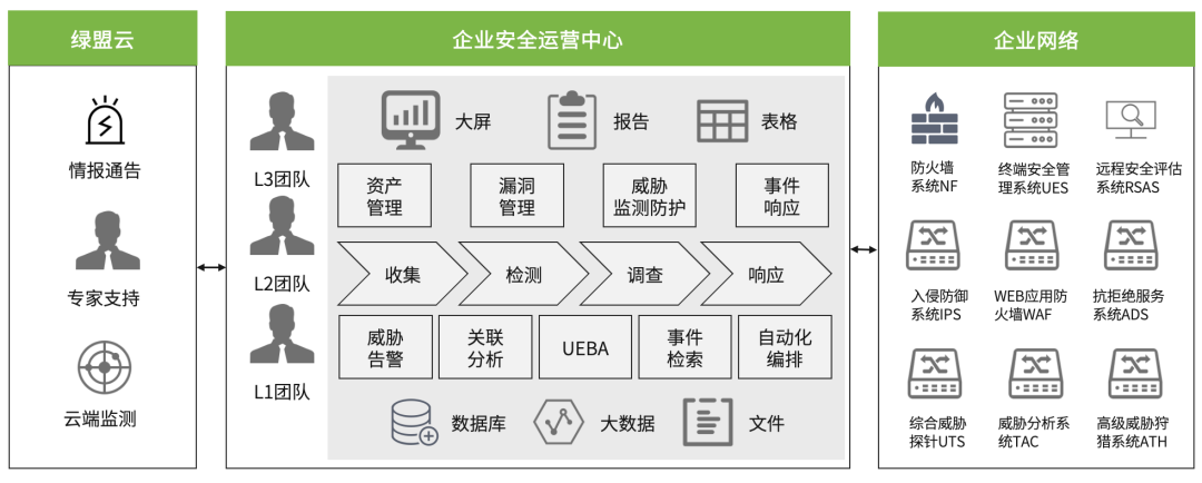 此次通过评估的绿盟智能安全管理运营平台是专门为安全运营中心设计的安全管理平台。绿盟科技企业安全运营中心建设服务方案,基于绿盟智能安全管理运营平台,以业务资产为核心,为客户提供贯穿防护、检测、响应和处置的安全运营体系建设,实现资产、威胁、脆弱性管理闭环管理,持续提升企业安全能力和成熟度。