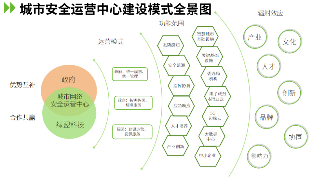 城市级安全运营中心是数字化政府建设的核心要素之一,是数字政府的“安全大脑”。城市智能运营中心综合运用云计算、大数据等现代信息技术,将政府信息系统、城市便民服务系统、企事业单位信息系统等系统的安全信息,进行全面的感知、分析、预警、处置。从整体上对城市政务信息系统,以及本地其它信息系统进行全面的安全态势感知,使主管部门可以快速的了解当地信息网络的实际安全态势,调整安全配置和建设方向,快速处置安全事件,持续提升和优化数字政府整体安全。