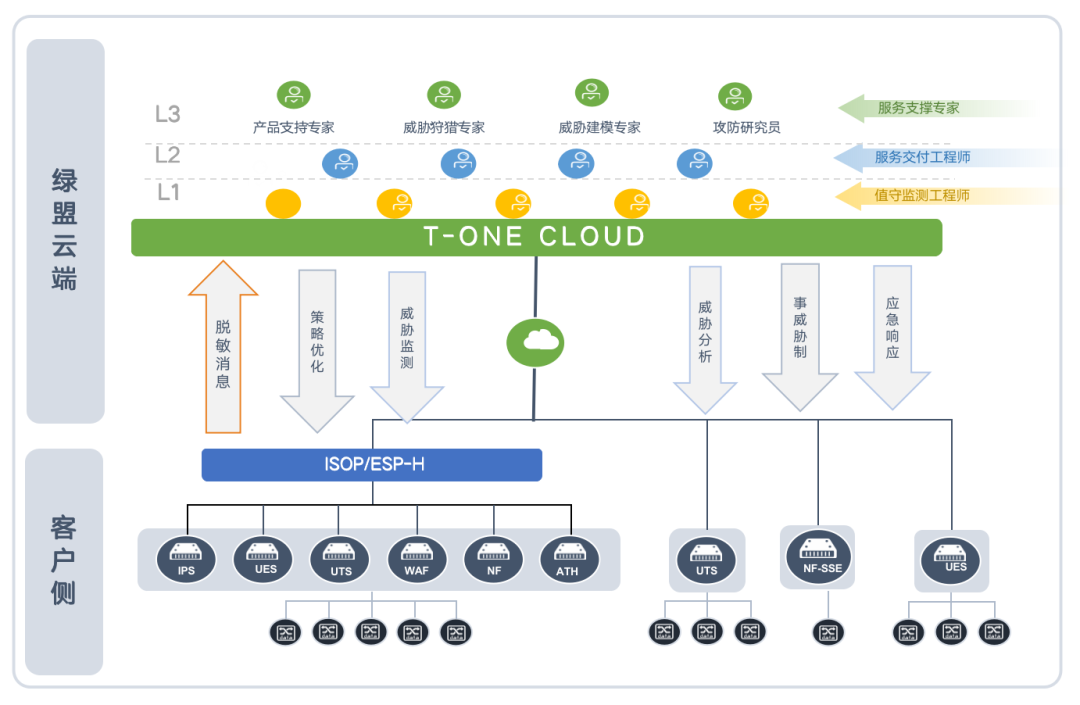 云端7*24小时的专家支撑,解决了客户侧安全人员紧缺问题,实现全天候安全监测。