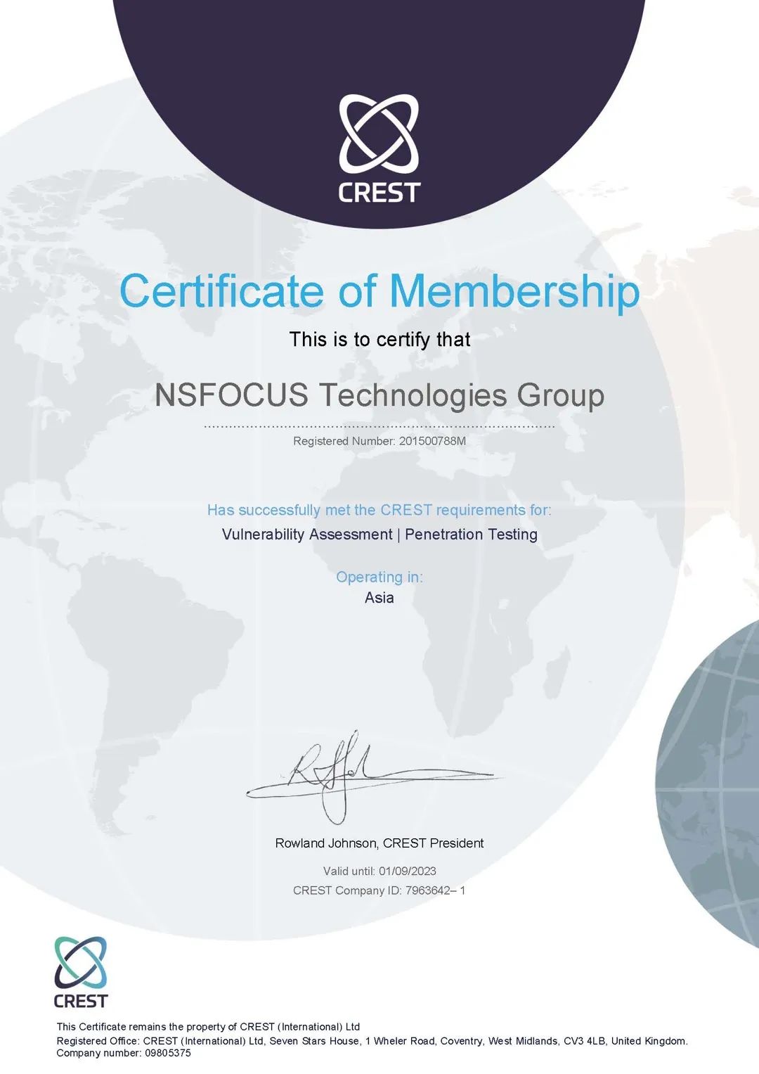 一直以来绿盟科技都在向用户提供卓越的安全服务。CREST认证让我们的客户更加确信绿盟科技服务的专业程度和可靠质量。目前,绿盟科技已经为我国港澳台地区、新加坡以及全球其他地区的客户交付了众多安全服务项目,客户范围覆盖各个行业的大型跨国企业到中小型的企业。未来,绿盟科技将继续为客户提供最高水平的专业服务和关怀。
