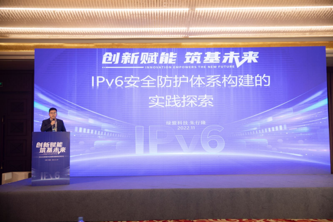11月29日,由江西省委网信办、江西省发改委、江西省科技厅、江西省工信厅、江西省通信管理局共同主办,中国电信股份有限公司江西分公司和国家计算机网络应急技术处理协调中心江西分中心联合承办的“2022江西省IPv6创新发展和应用论坛”在江西前湖迎宾馆召开。论坛以“创新赋能,筑基未来”为主题,来自江西省内外政、企、学、研等社会各界知名专家学者,就IPv6技术创新发展应用、重点领域IPv6应用、物联网+IPv6应用、IPv6网络安全等话题进行深入研讨。绿盟科技受邀出席本次会议并在大会网络安全论坛发表《IPv6安全防护体系构建的实践探索》主题演讲。