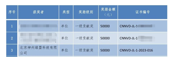 近期,中国国家信息安全漏洞库(CNNVD)发布2023年度(第一期)漏洞奖励评选结果,23个漏洞在我国网络安全及风险消控工作中发挥出积极作用。绿盟科技凭借在漏洞挖掘研究及报送工作的有力支撑获得“一级贡献奖”。