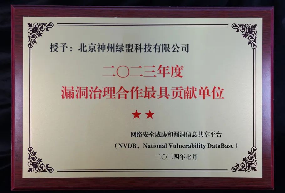 近日,网络安全威胁和漏洞信息共享平台(NVDB)对2023年度在网络产品安全漏洞管理方面作出杰出贡献的单位与个人进行表彰。凭借在漏洞安全领域的技术实力和漏洞挖掘能力,绿盟科技获评2023年度“漏洞治理合作最具贡献单位”。同时,绿盟科技格物实验室两位安全研究员被授予2023年度漏洞报送“金帽子”称号。