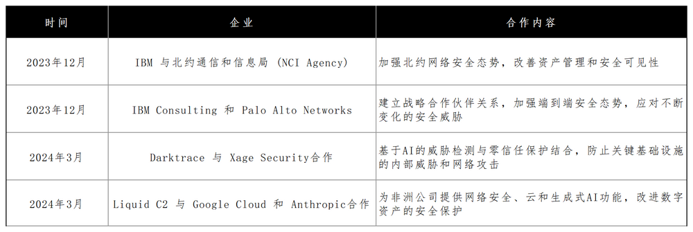 且这些企业通过并购整合、合作,持续扩大在行业的竞争力。2023年9月,思科以280亿美元的高额现金价格收购网络安全软件公司Splunk。此后半年时间内包括IBM、Palo Alto Networks、Xage Security等企业纷纷通过合作的方式,强化行业竞争力。