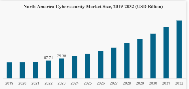 另外北美地区因高频网络安全威胁、严格监管要求、企业高安全意识、技术创新以及政府支持等多因素带动下,可能会以最高的网络安全市场份额占据主导地位。