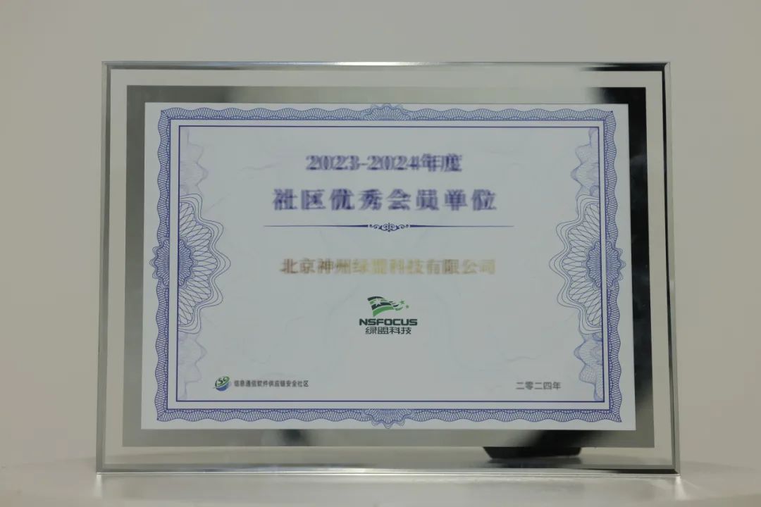 优秀会员单位评选是社区年度例行活动,是社区表彰具有突出贡献单位的重要方式,会上,绿盟科技荣获“2023-2024年度社区优秀会员单位”,未来,绿盟科技将在软件供应链安全领域深耕,持续为社区的发展贡献力量。