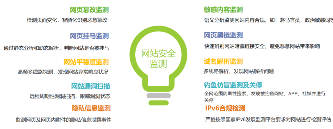 网站安全监测服务是一款面向用户网站的安全监测类托管型SaaS服务,为用户提供7*24H的安全事件监测发现与预警通告。定期出具网站安全综合评估报告,提供专业的安全建议,帮助用户全面掌握网站风险状况与安全趋势,全天候守护用户的网站安全。