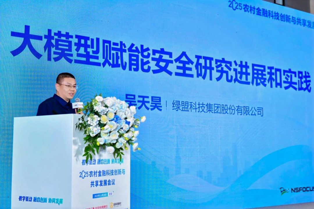 11月28日,以“数字驱动、融合创新、协同发展”为主题的“2025农村金融科技创新与共享发展会议”在西安召开。本次会议由 北京农商银行 和金科创新社联合主办, 陕西省农村信用社联合社 、丝绸之路农商银行发展联盟共同支持。 绿盟科技 携“风云卫”AI安全能力平台亮相大会,并分享了大模型技术在安全研究领域的创新进展与实践成果。 绿盟科技 集团金融事业部总经理尹铎、产品BG副总经理吴天昊出席会议,结合金融行业安全需求,探讨了AI技术在构建智能化金融安全体系中的关键作用与应用前景。
