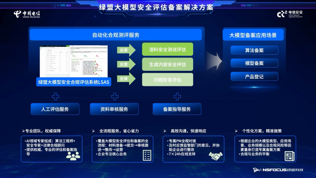 面对新一轮科技 革命 和产业变革的战略机遇, 绿盟科技 始终站在技术前沿,深度融合人工智能与网络安全技术,为运营商网络与业务系统提供智能、主动、全生命周期的安全防护能力。面向未来, 绿盟科技 愿与 中国电信 及行业伙伴携手,共同应对新时代下的网络安全挑战,共同打造数智科技生态繁荣,推动千行百业智能化、绿色化、融合化转型升级。