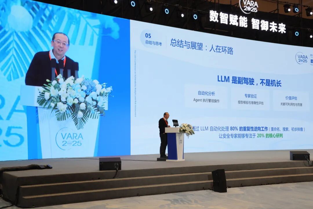 演讲最后,叶晓虎强调“人在环路”是未来的核心范式。通过LLM自动化处理80%的变量重命名与初步排查等重复性工作,安全专家得以专注于剩余20%的核心研判。这不仅是技术的升级,更是安全生产力的一次重要重构。