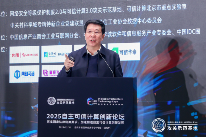 本次论坛现场,中国工程院院士沈昌祥发表了《用自主可信计算打造人工智能安全产业新生态》的主题演讲。沈院士强调,必须通过主动免疫的可信计算架构,为人工智能系统构建内生安全防线,确保其全程可测可控、安全可信,从而为人工智能产业的健康发展筑牢基石。